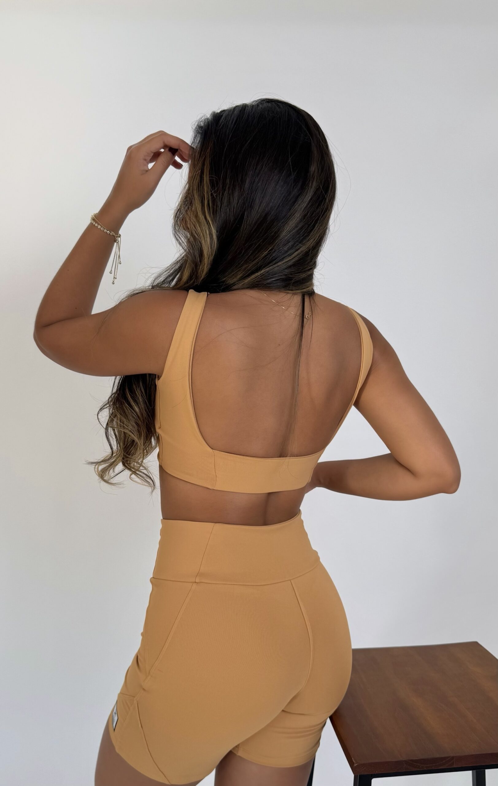 Esse conjunto foi desenvolvido para unir estilo, conforto e desempenho em um visual moderno e marcante. O top com decote profundo nas costas é o destaque da peça, um detalhe que traz elegância e valoriza a silhueta, sem abrir mão do conforto. Já o shorts cintura alta modeladora oferece firmeza e um caimento perfeito, acompanhando o corpo com segurança em todos os exercícios.