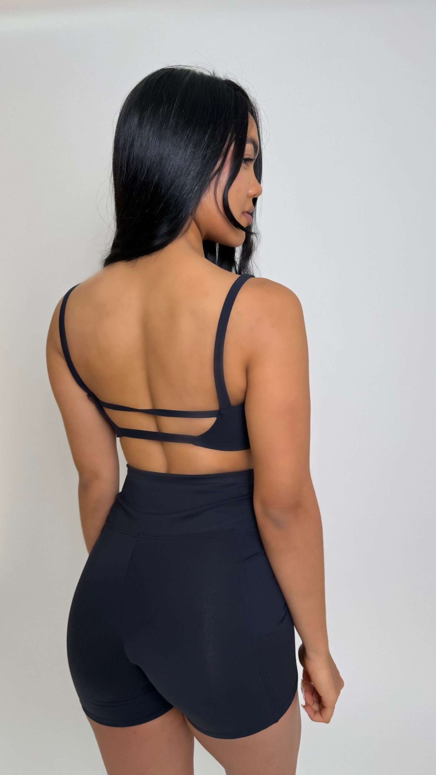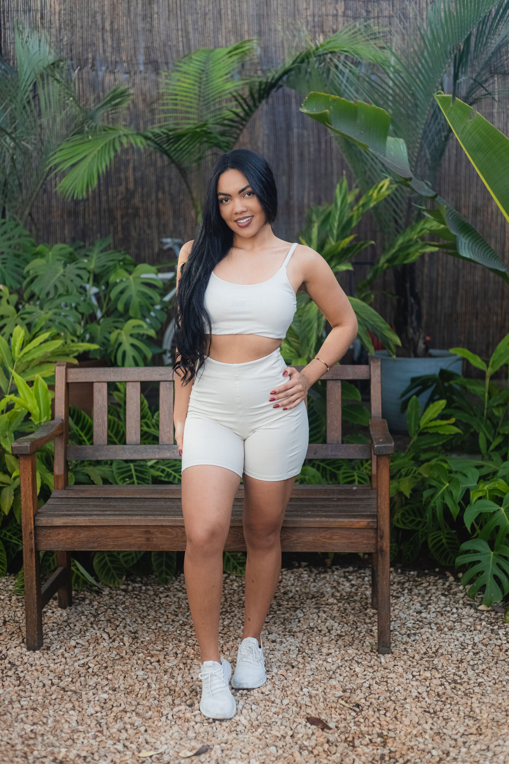 Conjunto Paola possui top com decote nas costas, perfeito para quem busca um visual leve e sofisticado. Produzido em poliamida de toque suave, garantindo conforto, respirabilidade e liberdade total nos movimentos.